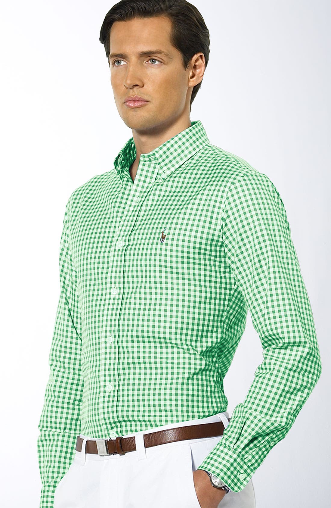 .Layer your accessories and don't be shy to add a combination of pastels. Plain green and a black collared shirt with full sleeves.