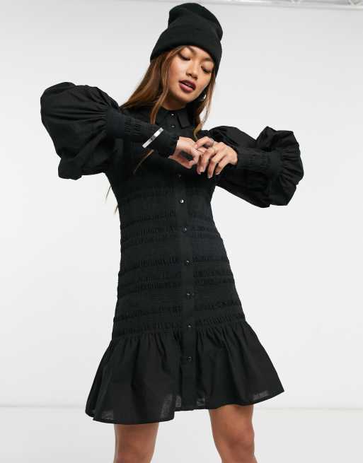.Asos design shirred mini shirt dress in black. Styles include a range of prints, colours & fits including oversized, long & mid length.