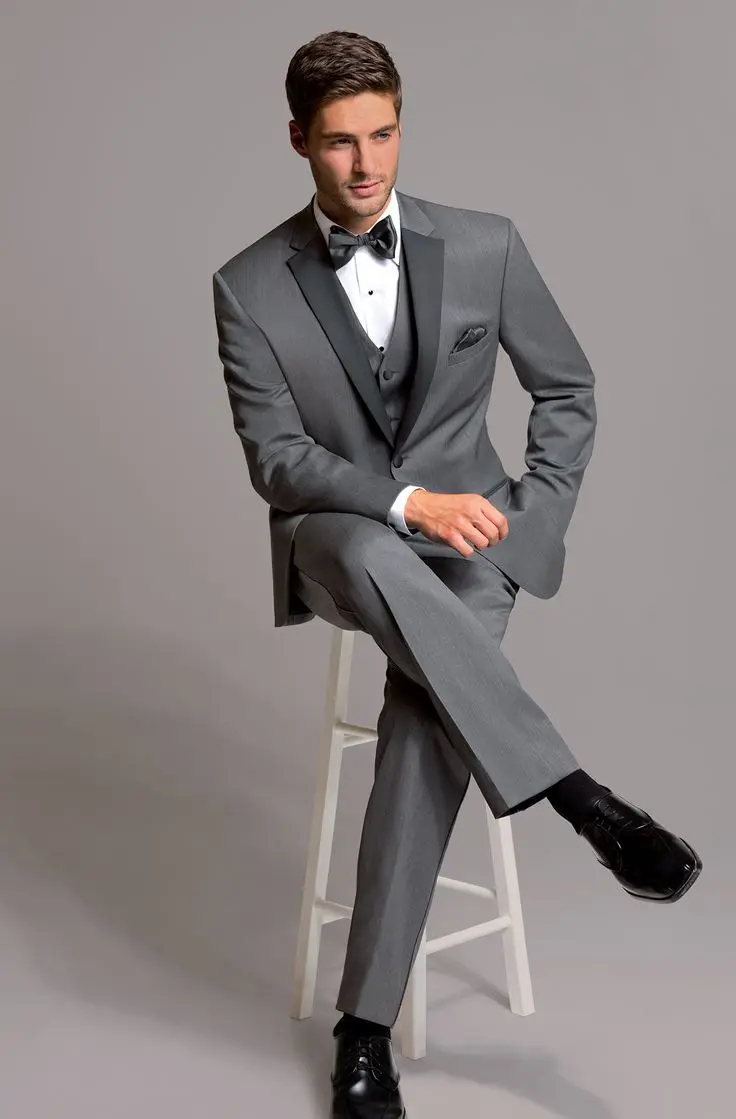 .Self tied black bow tie formal black tie bowtie in satin | etsy. It comes with a light grey blazer jacket, vest, slacks, faux skinny gray tie and white dress shirt.