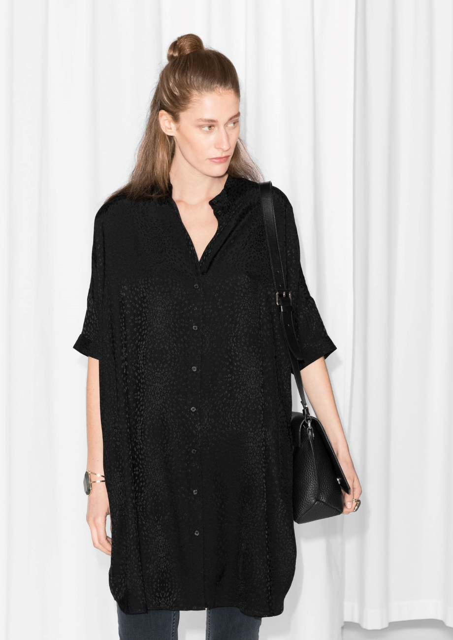 Download Oversized Black Shirt Dress Womens PNG