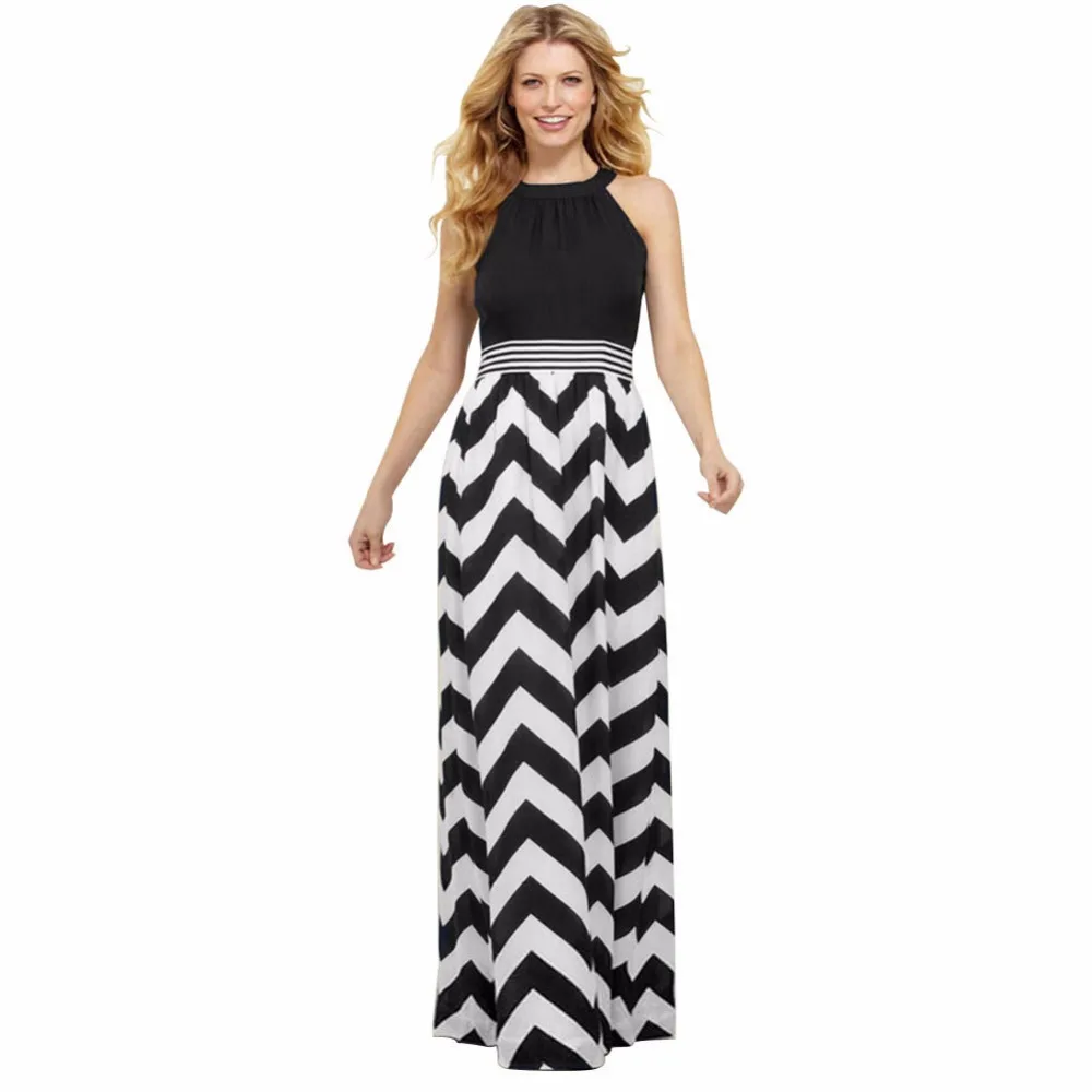 View Black And White T-Shirt Maxi Dress Pics