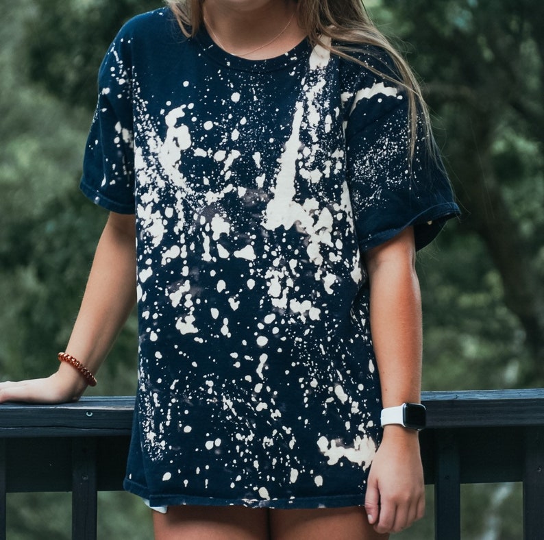 Reverse tie dye or tie dyeing with bleach is exactly what i'm going to show you how to do today. It made this plain, black boyfriend tee so much more fresh & fun. Supplies for dyeing with bleach. Bleach tie dye is a huge trend right now, and it's so easy to do! You cannot bleach to pure white from black. You can also choose from printed, yarn dyed, and embroidered bleach black t shirt, as. Bleach tie dye, auras, tie dye, vibrant tie dye, psychedelicart, fashion trends, pretty tie dye, autumn colors, black red tie dye, fluidart, tie dye pattern, brushstrokes, hippies, paint strokes, hippie art. We tried three different styles of bleach dying. Reverse tie dye or tie dyeing with bleach is exactly what i'm going to show you how to do today. Reverse tie dye with bleach #tiedye #bleachdye #tiedyebleach #dyeclothing #tiedyeshirt #blackshirtdye #bleachpen. Remember to wash separately the first time to avoid bleaching half of your clothes instead. If you're outside on a nice, sunny day you can literally see the bleach working as you spray it. How to tie dye & bleach tie dye | sweatsuit, shirts & more. Start with a colorful cotton shirt and use bleach to lighten it in certain places. A wide variety of bleach black t shirt options are available to you, such as feature, technics, and material. Let a mod know and we will put it here. So when i saw the bleached design diy i had to try it. Gray and brown will usually turn pink. It was a good primer, i found with straight spray bottle method my design ran quite a bit and the detail was lost. They're fun to make and they make awesome gifts! Of course, always keep bleach away from children. This is a fun technique you can use while at home! Bleach pen shirt bleach art tie dye crafts diy kleidung. Last up, if you want to try this out yourself, remember to do it outdoors, so the fumes can. Make sure you turn your shirt so you get all sides of the shirt. How to bleach a spiral tie dye pattern into your sweatshirt that needs a little extra swag. I decided to use a old black shirt of mines and create a awesome tie dye design using materials you have at home! That's the beauty of this tutorial. You can use rubber bands to tie up your shirt in the design of your choice. The yellowing that is left behind by bleaching is evidence of the burning that happens during the process. Using bleach and water in place of liquid dye, we work four all black shirts into a funky looking.