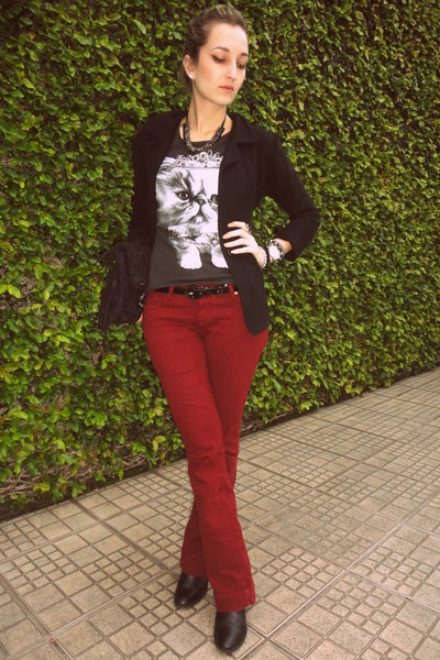 View Red Blazer Black Shirt Black Pants PNG
