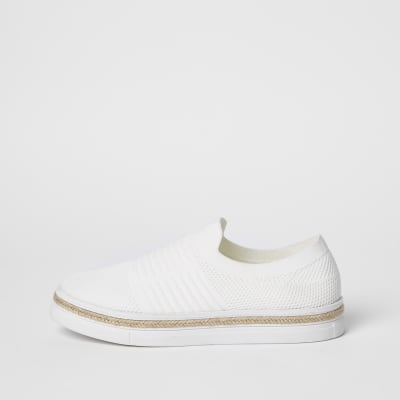 White elasticated lace-up runner trainers | River Island from images.riverisland.com